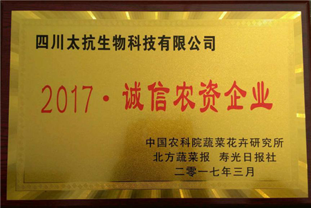 乘著315國際消費(fèi)者權(quán)益日之東風(fēng),借力第十八屆中國(壽光)國際蔬菜科技博覽會開幕在即之勢,2017年3月18日上午,由壽光日報(bào)社、北方蔬菜報(bào)主辦,中國農(nóng)科院蔬菜花卉研究所協(xié)辦的“第七屆春季百萬農(nóng)資惠農(nóng)展暨品牌農(nóng)資頒獎典禮”在中國(壽光)國際會展中心隆重舉行,太抗生物在頒獎典禮上榮獲“2017·誠信農(nóng)資企業(yè)”獎。