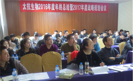 會上,公司各區(qū)域負責人就2016年的銷售情況做了總結(jié)匯報,全年總銷量比去年增長70%,太抗在各區(qū)域的品牌影響力顯著提升,尤其是今年新上市的產(chǎn)品——枯芽春?枯草芽孢桿菌在云南區(qū)域熱賣得到了代理商的極大肯定和全力推廣,太抗哈茨木霉菌也一度出現(xiàn)供不應(yīng)求的斷貨現(xiàn)象;各銷售精英紛紛上臺分享了在工作中遇到的難題及解決方法,用自身一段段經(jīng)歷證實了那句話:賣產(chǎn)品,首先要賣的是自己。只有自身的專業(yè)知識讓客戶信服,只有自己的敬業(yè)精神讓客戶滿意,只有自己的不辭辛勞讓客戶認可,才能讓客戶從心底里接受并信任我們的產(chǎn)品;技術(shù)經(jīng)理們也用一系列實實在在的圖片數(shù)據(jù)講解了一年來各室內(nèi)、大田試驗結(jié)果,提煉出太抗系列產(chǎn)品的新賣點。