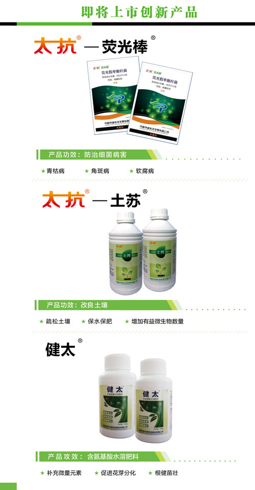 特普生物致力于生物農(nóng)藥的研發(fā)、生產(chǎn)和銷售,短時間內(nèi)迅速成長、壯大,在農(nóng)化行業(yè)中成功立足,非常感謝新老客戶朋友的支持!公司將繼續(xù)進(jìn)行系列產(chǎn)品的開發(fā),拓寬產(chǎn)品線,打造“地上地下”相結(jié)合的生物防治產(chǎn)品體系,以不斷滿足用戶和作物病蟲害多樣化的需求,