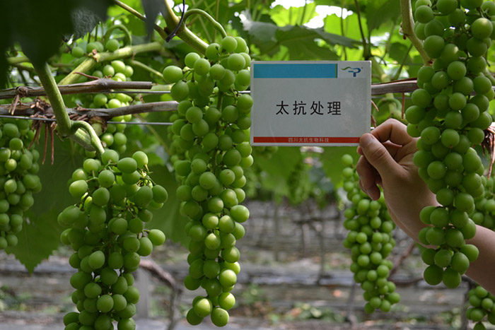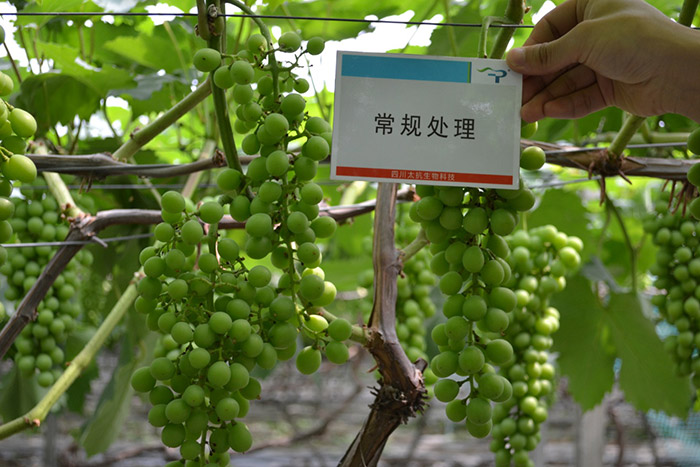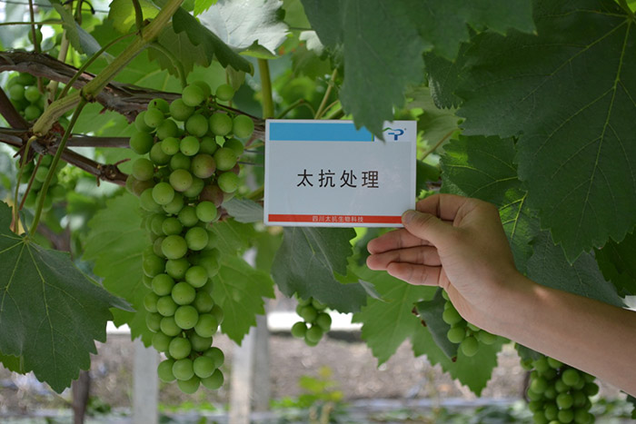 莊園牧歌陳總對太抗系列產(chǎn)品的效果給予了充分肯定:第一、與進口化學(xué)殺菌劑效果相當;第二、性價比高,藥效持效期長;第三、植株長勢健壯、葉片濃綠厚實;第四、促進葡萄生長,提前著色,可以使葡萄提早上市。陳總說“我們國人自己生產(chǎn)的太抗生物農(nóng)藥既然有這么好的效果,性價比高,又安全,我肯定支持國產(chǎn)噻”,這是對我們太抗最大的肯定與鼓舞!